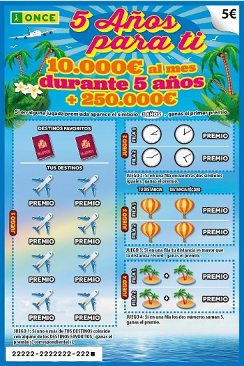 Premios del rasca 5 años para ti de la ONCE