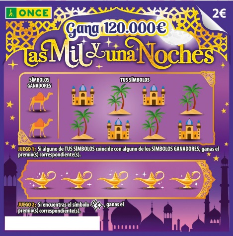 A continuación encontrarás toda la información sobre el Rasca Las Mil y Una Noches 2026 de la ONCE, un juego instantáneo de 2 € que permite ganar hasta 120.000 € gracias a sus dos áreas de juego y múltiples oportunidades de premio en un mismo boleto.